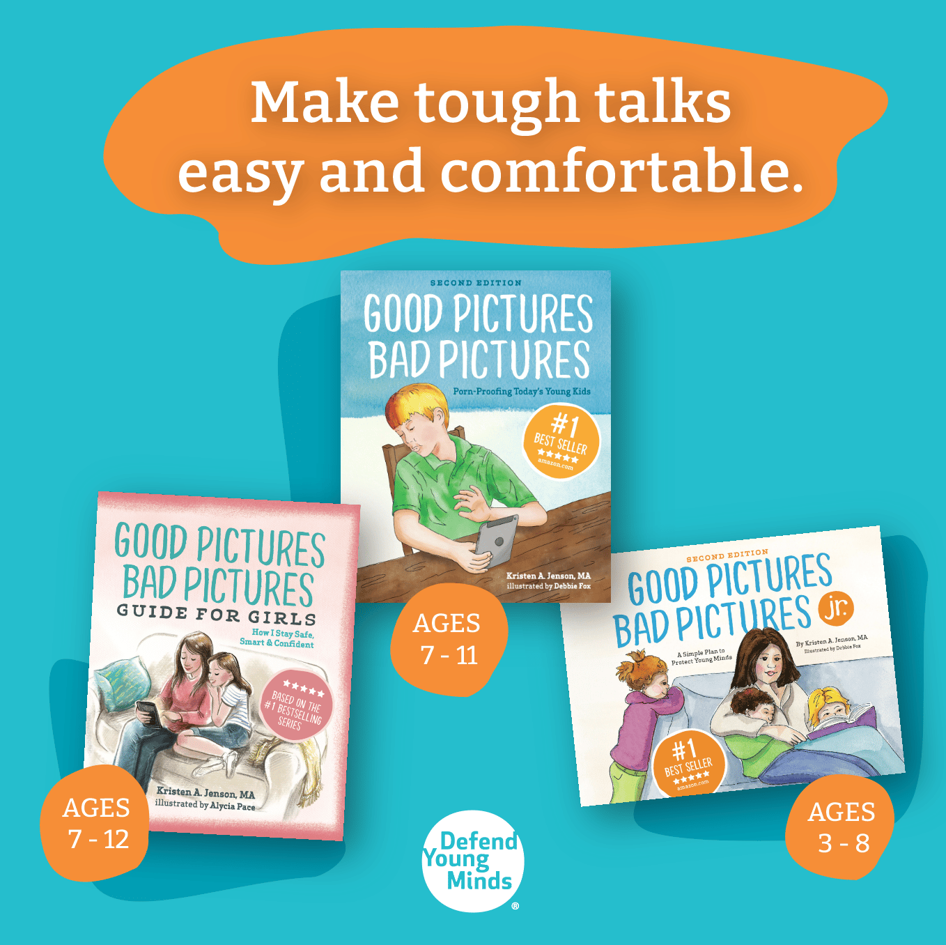 With you and for you! Kristen P.S. We’ll be adding this warning to the list of our popular article, How Do Kids Find Porn in 2026? 13 Pipelines to Porn Targeting Your Child. If you haven’t read it, check it out! Another great resource for kids who have been exposed to porn is our 80-page guide My Kid Saw Porn—Now What? You can download it instantly and get our best curated advice. *Jan Jekielek is pronounced YAHN Ya-kell-ick Looking for additional resources to discuss the dangers of pornography with your children? Our Good Pictures Bad Pictures books can give you the words, stories, and confidence to begin. |